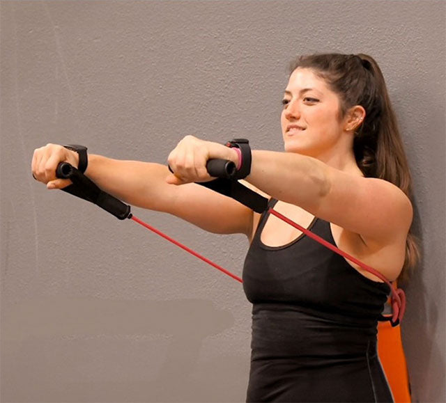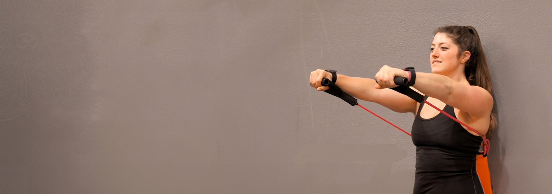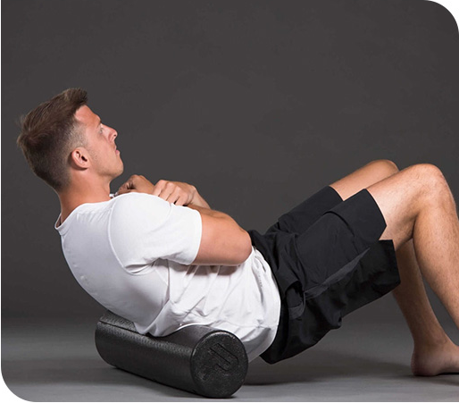 Stretching with a resistance band on a body Roller aligns your body and improves your posture. Good posture energizes your body and prevents injuries during exercise activities.